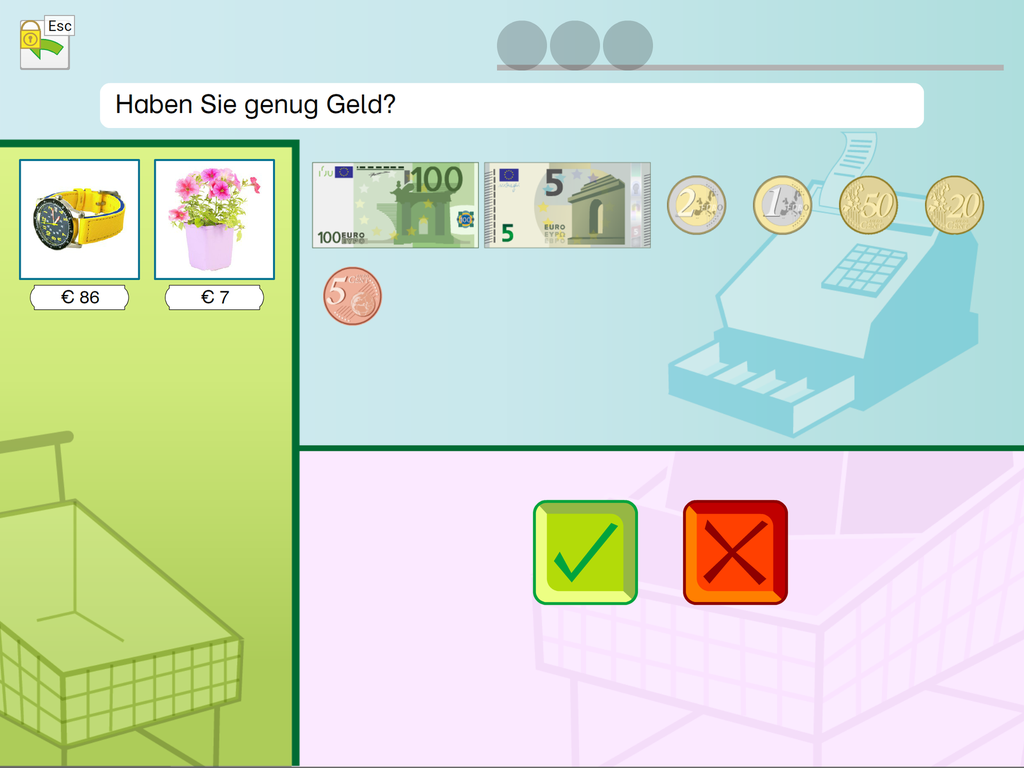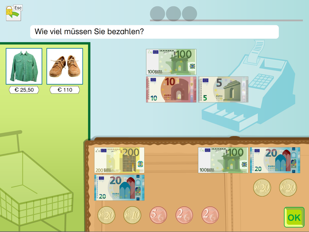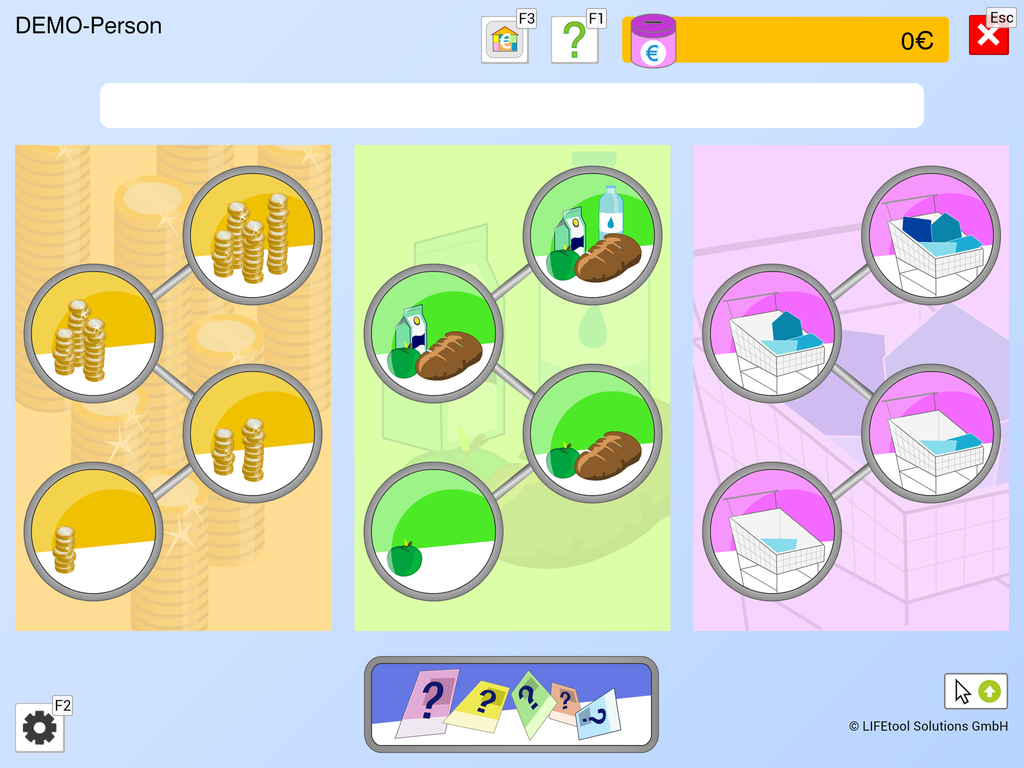 Einkaufen mit dem Euro ist eine umfangreiche Lern- und Trainings-App für Jugendliche und Erwachsene, die lebenspraktische Fertigkeiten zum Themenkreis „Geld, Waren, Einkaufen“ erwerben möchten.