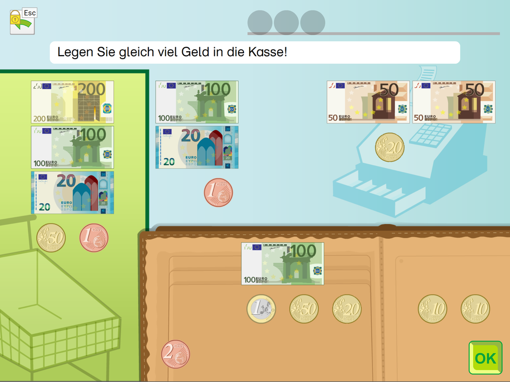 Einkaufen mit dem Euro ist eine umfangreiche Lern- und Trainings-App für Jugendliche und Erwachsene, die lebenspraktische Fertigkeiten zum Themenkreis „Geld, Waren, Einkaufen“ erwerben möchten. In unterschiedlichen und abwechslungsreichen Übungen werden sowohl Basiskenntnisse (z. B.: Geld kennenlernen) als auch fortgeschrittene Inhalte vermittelt (z. B.: Preise addieren, Wechselgeld berechnen, usw.).