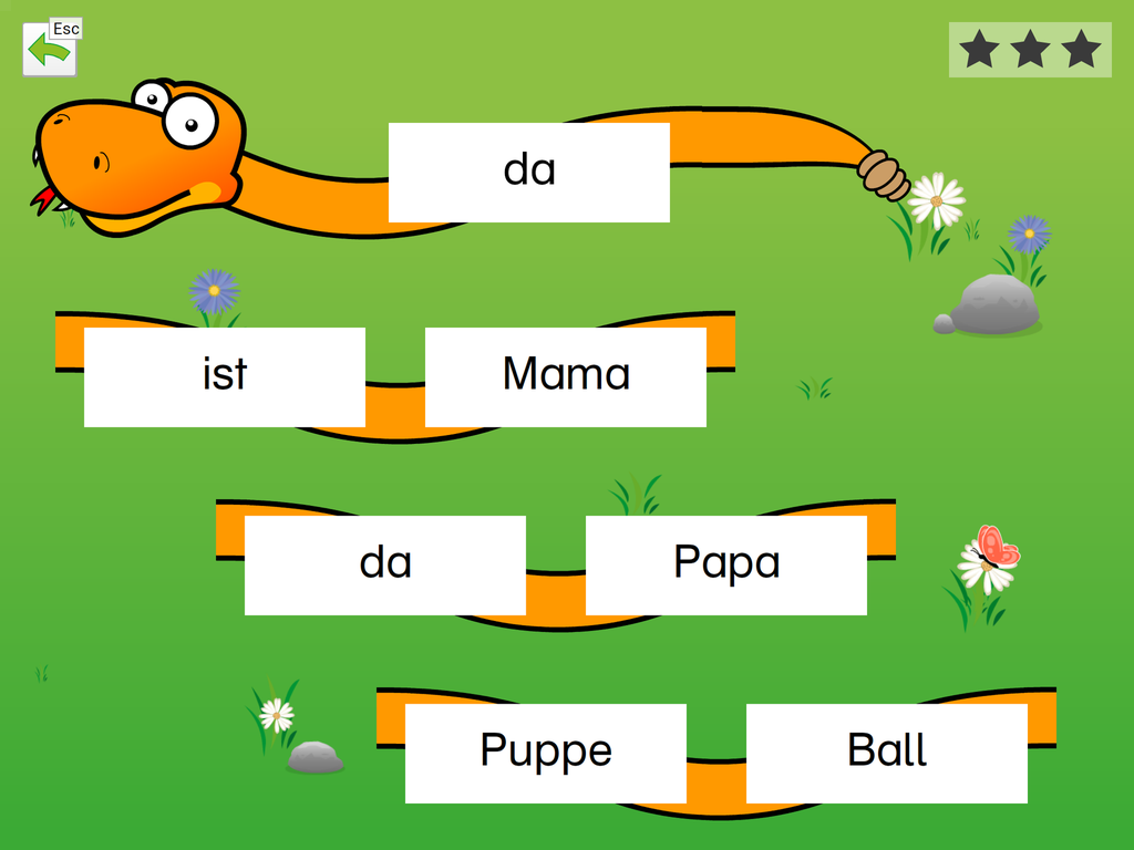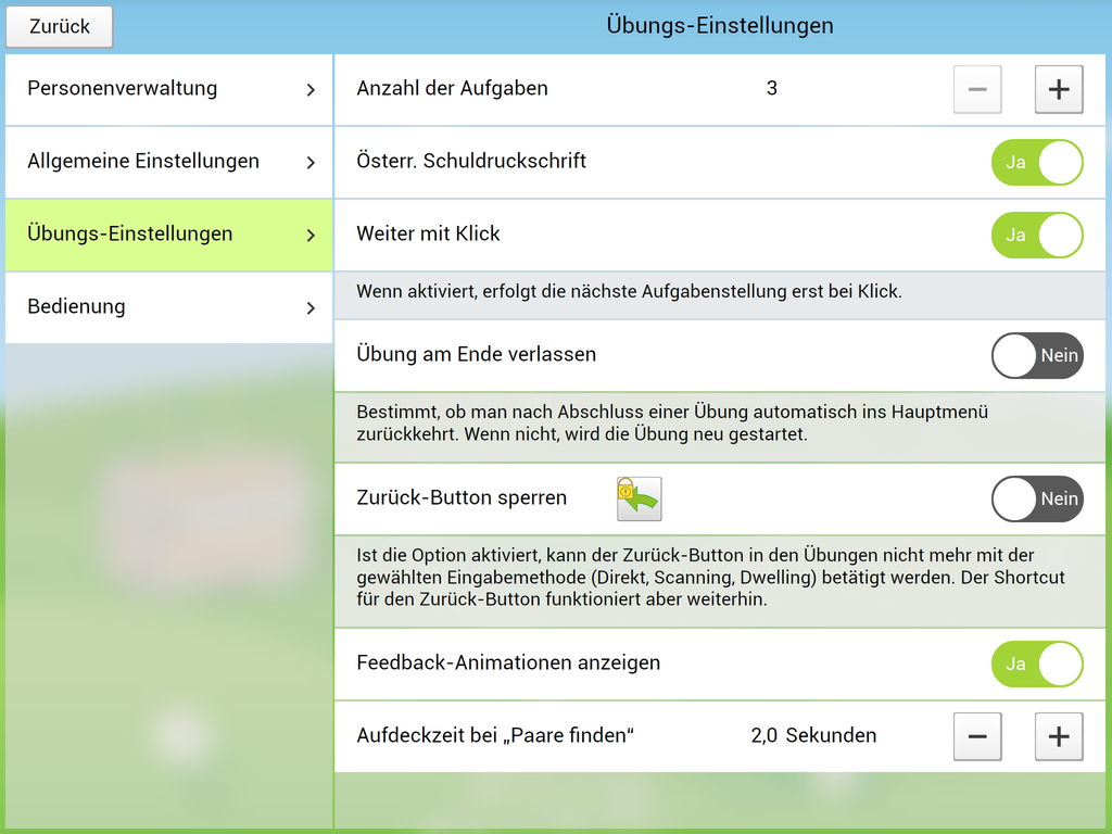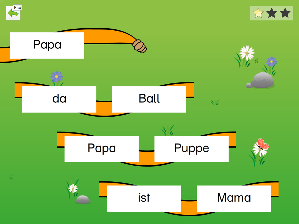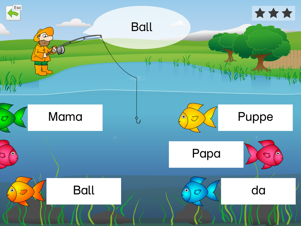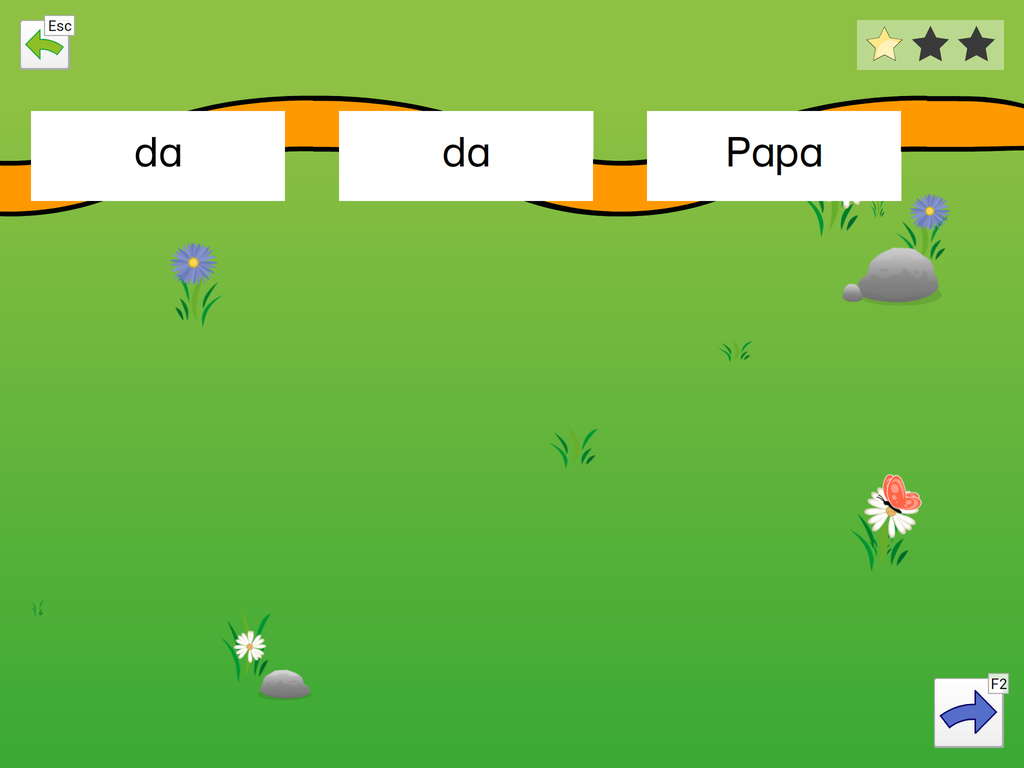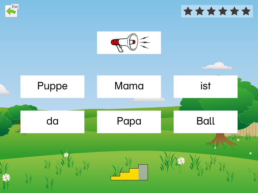 Die App beinhaltet die Basisübung „Wörter lernen“ zum Einführen neuer Wörter und 5 Übungen zum Festigen der erlernten Wörter.